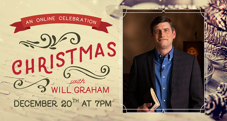 Christmas with Will Graham will be Will’s sixth streaming event of 2020. Earlier this year when the pandemic forced his in-person evangelistic gatherings (called Celebrations) to be postponed, Will pivoted into online outreaches. Thus far, approximately 834,000 people across 75 countries have viewed the livestreams, with more than 2,600 registering decisions for Christ.