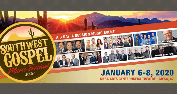 As with Southwest Gospel Music Festivals of the past, IMC Concerts will be bringing the most popular groups in Southern Gospel music to Mesa for the event. This list includes The Booth Brothers, The Hoppers, Legacy Five, Greater Vision, The Triumphant Quartet, The Martins, Tribute Quartet, Liberty Quartet, Keepers of the Faith and renowned speaker/comedian Dennis Swanberg.