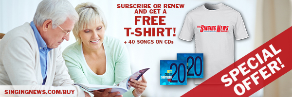 Were you planning to subscribe or renew your subscription at NQC? Take advantage of this online offer before October 4, 2020 and we’ll send you a free Singing News T-Shirt + 40 Southern Gospel songs on two CDs.