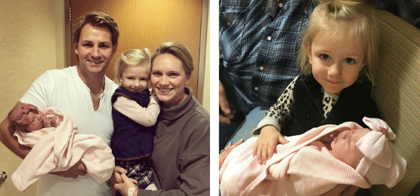 The family reports that big sister Kate (born April 2017) is “already lovingly bossing little Greta around and will be reading her books in no time.”