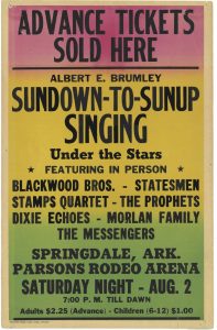 Concert promoter Duane Garren shares that Mr. Negre’s group, The Messengers, sang at the first two Brumley Sings at the request of Albert E. Brumley. Pictured at left is the poster from the first sing.