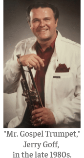 Dr. Goff launched Jerry & The Singing Goffs the very next day after leaving on good terms with The Thrasher Brothers and until the late 1980s, the Goffs were one of Southern Gospel Music’s most sought-after groups. It was during those years that Dr. Goff earned the moniker of “Mr. Gospel Trumpet.”