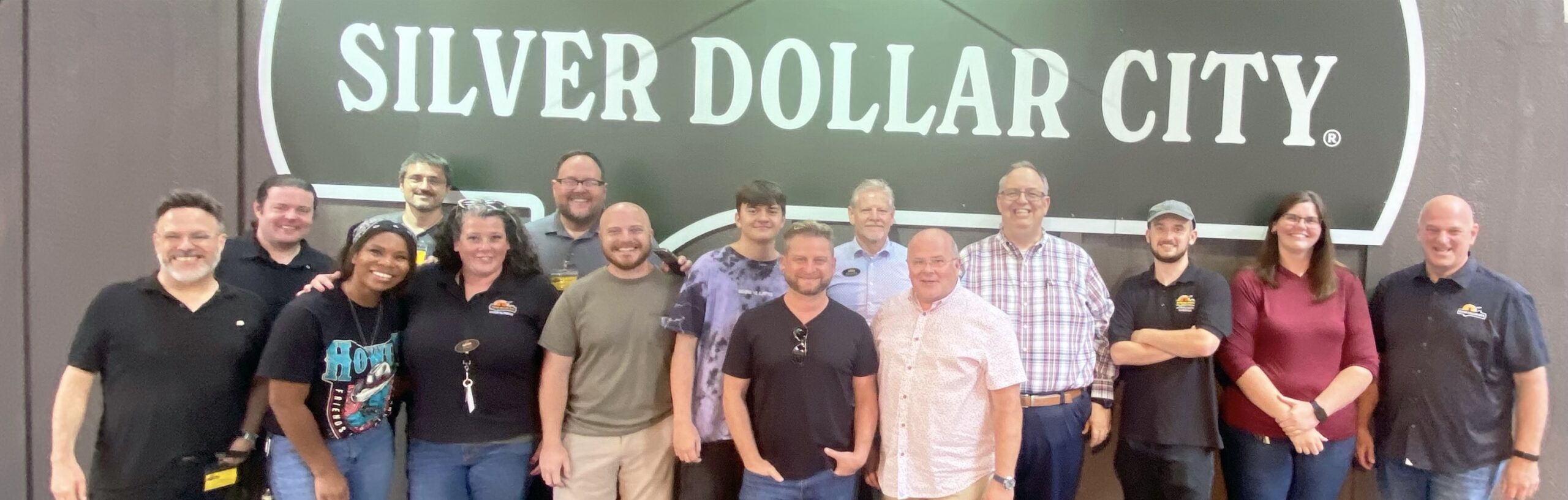 Photo: Team members of Silver Dollar City and SingingNewsTV are pictured following the conclusion of four days of filming and live stream broadcasts in Branson, Missouri. Left to right are Jake Sammons (Singing News), Brandon Tait (Jib Operator), Erin O’Dell (SDC Stage Manager), Nic Embry (Video One Productions), Amanda Carson (SDC Entertainment Supervisor), Joseph Reed (Singing News Radio), Chris Sasser (Singing News), Connor Reed (SNTV), Scott Godsey (Sea Walker Media President and CEO), Mike Hefley (SDC Manager Entertainment and Events), Danny Jones (Vice President, Singing News), Duane Garren (SDC Emcee), Grant Rolofson (SDC Entertainment Technician), Kayla Keirsey (SDC Tech Lead), Brad Thomas, (SDC President).
