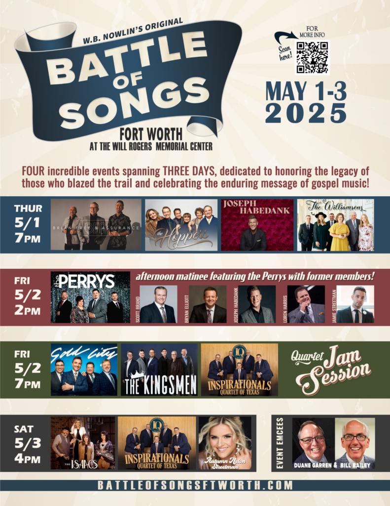 Fort Worth, TX – The Battle of Songs Fort Worth returns to the Will Rogers Memorial Center, May 1-3, 2025, showcasing an incredible lineup of gospel music’s finest talent. This three-day celebration promises unforgettable performances, inspiring worship, and joyous fellowship.