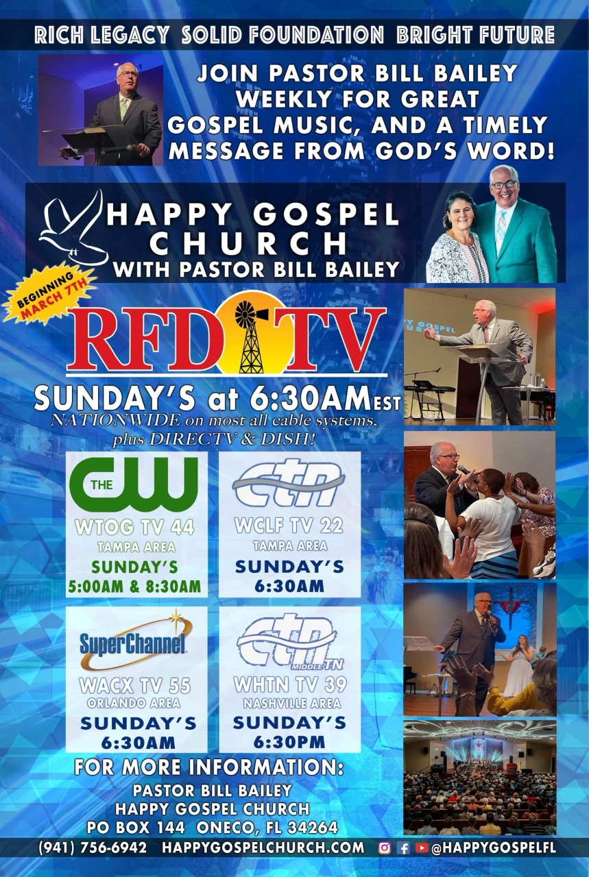 “Sally and I are excited to announce that our weekly television ministry is expanding nationwide to RFD-TV! Watch us every Sunday morning at 6:30 a.m. (eastern), beginning March 7. It’s an honor to join RFD-TV’s Sunday morning lineup of religious programs that include Dr. David Jeremiah, Pastor John Hagee, Dr. Charles Stanley, Jentezen Franklin, Robert Jeffress, and Allen Jackson.