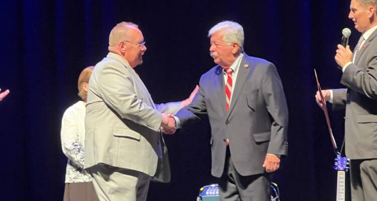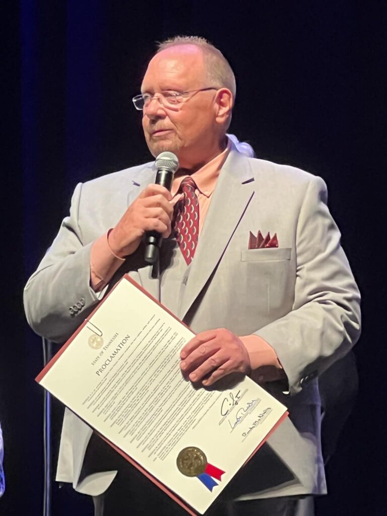 State officials were on hand to give special recognition to Tommy Spencer for the 70th Anniversary of the television program, Sunday Tradition. The presentation was made to Tommy Spencer by State Representative Lowell Russell and Tennessee Lt. Governor Randy McNally at a Paul Belcher concert in Knoxville, Tennessee, at the Knoxville Civic Auditorium.